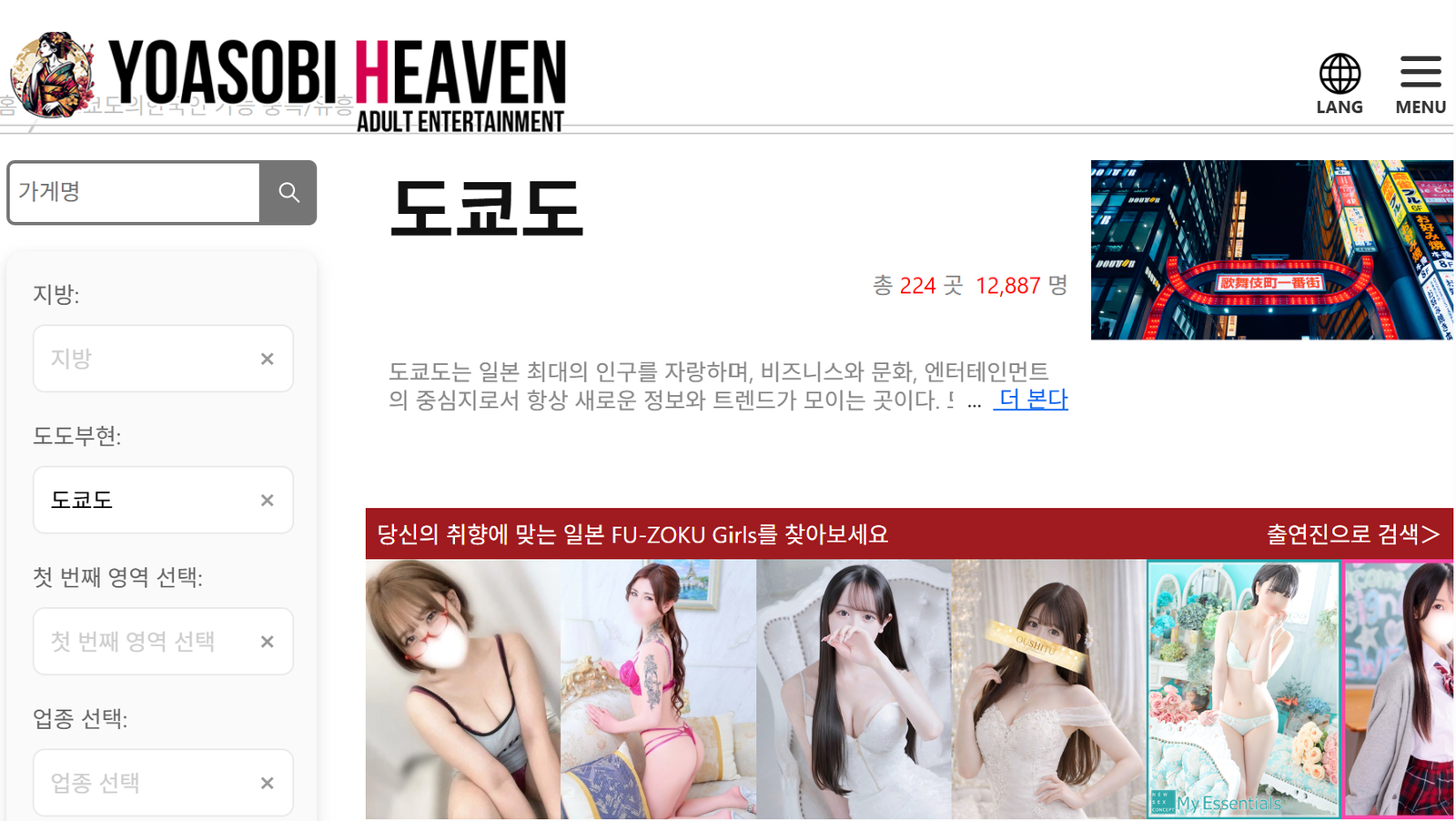 씨티헤븐은 일본 전역의 정보를 가장 폭넓게 다루는 대표적인 플랫폼으로 규모나 정보량 측면에서 사실상 최고의 사이트 입니다.