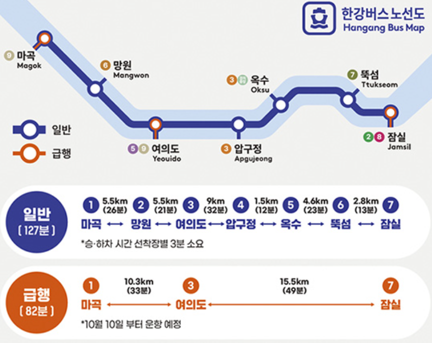 수상 한강버스 대중교통 신설 및 운행 정보 입니다.