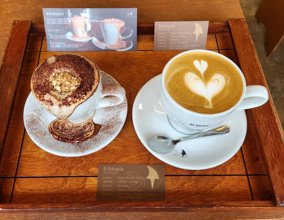 - 카모아 렌트카 VIP 쿠폰으로 비브레이브 카페에서 로쉐 커피 한잔 받고 디카페인 라떼는 별도 주문. 로쉐는 해외에서 더티커피로 불리는 커피로 태국에서도 한참 유행중인 커피. 웬간한 핸드메이드 커피숍에는 거진 다 있고 특히 치앙마이에 많이 있슴.