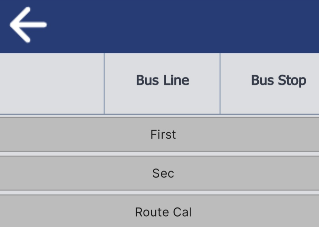 버스노선을 선택하면 아래 화면이 표시되고, 여기서 버스 번호를 상단 가운데 상자에 입력하거나 아래 목록에서 버스 번호를 선택할 수 있습니다(목록을 아래로 스크롤하면 더 많은 버스 번호가 표시됩니다)