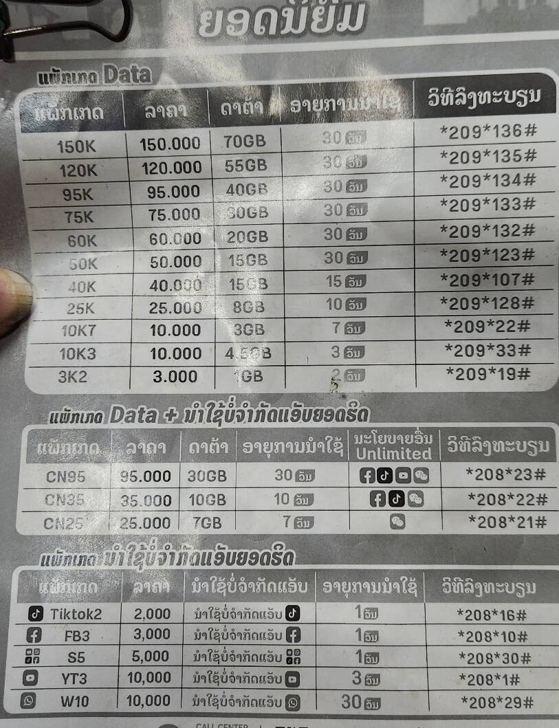 비행기를 타고 오시는 분들은 공항에서 사도 약 2달러에 구매가능하고 육로로 들어오시는 분들은 라오텔레콤이나 유니텔 같은곳에서 사시는걸 추천하고 이곳은 비엔티안 다운타운 내에서 정 급하게 사셔야 하는 분들만 참고하시라고 작성합니다.