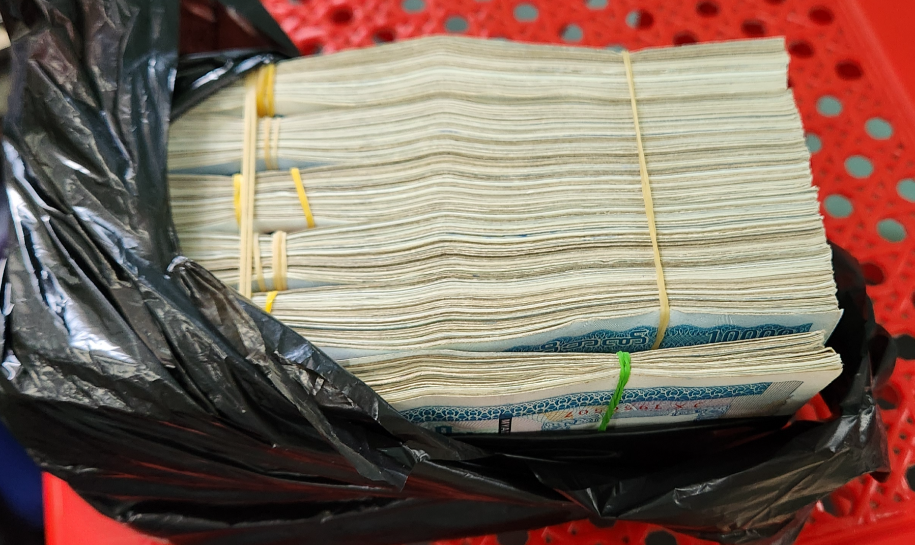 한묶음에 100만짯으로 총 4백 60만짯인가 되는데 들고다니기 부담스럽지만 호텔 금고에 넣을때 까진 어쩔수 없죠..
