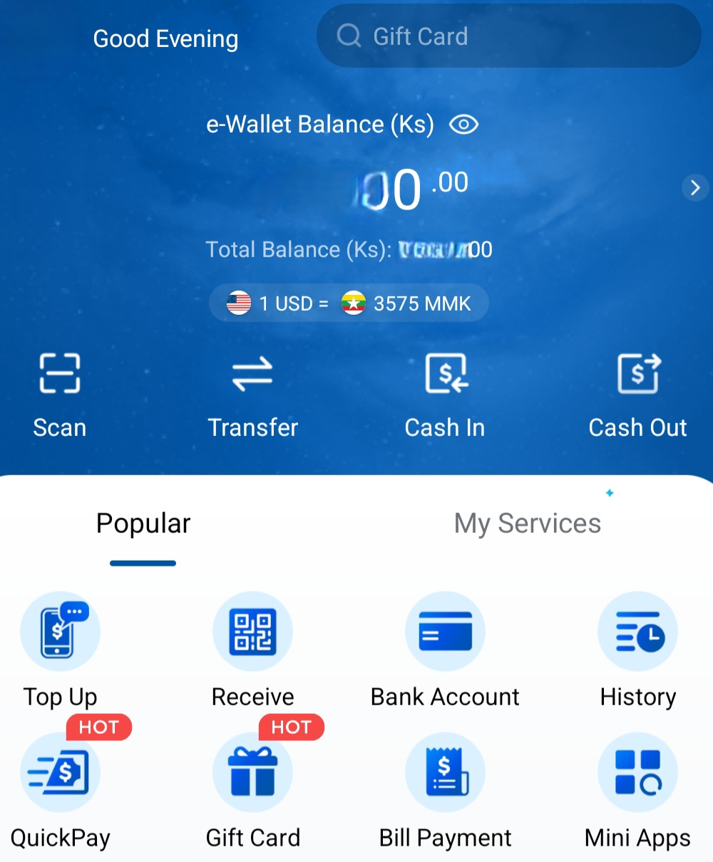 만약, 미얀마KBZ Bank 통장이 있는 사람은 자기 통장에서 KBZPay로 돈을 이체 시킬수도 있다