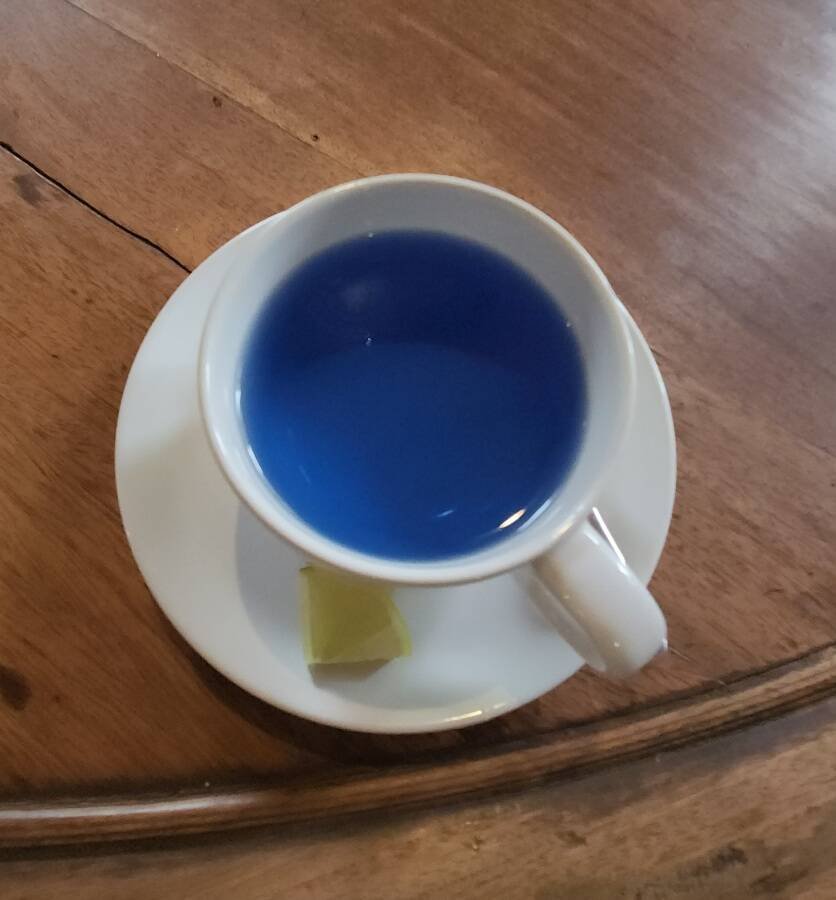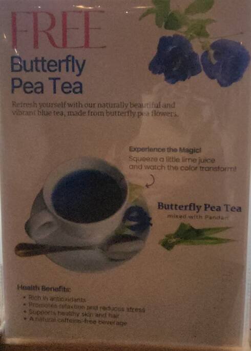 라오뮤지엄내에 있는 기념품샵에 가면 버터플라이피 라는 차를 무료로 줍니다. 이 차가 신기한게 파란색인데 같이 나오는 레몬을 짜 넣으면 색이 보라색으로 변해요. 차 성분중 레몬즙 산성과 반응하는 성분이 있는것 같습니다. 차 맛은 모..큰 맛이 안나긴 했어요