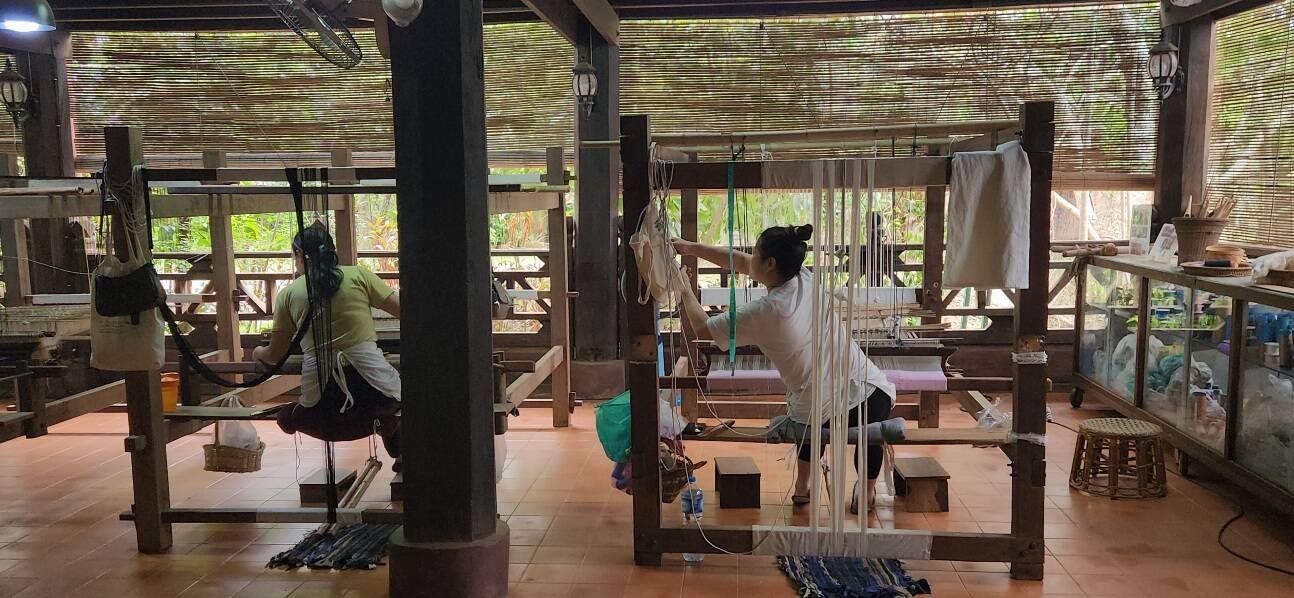 뮤지엄에 가면 아래 사진들 처럼 실제 라오분들이 옷을 만들고 있습니다.