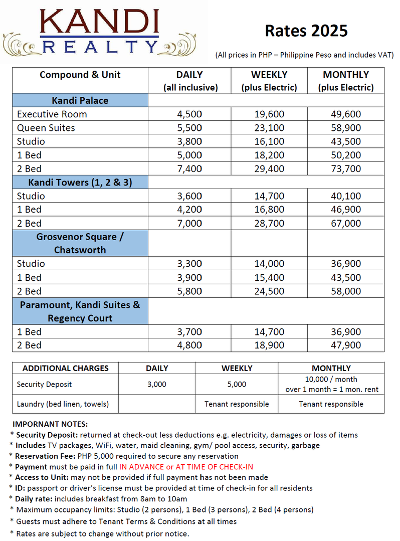 다들 아시는 앙헬레스에서 제일 큰 콘도인 칸디콘도, 칸디팔래스, 그로스배너 등의 2026년 숙박 및 한달살기 숙소비용 입니다.