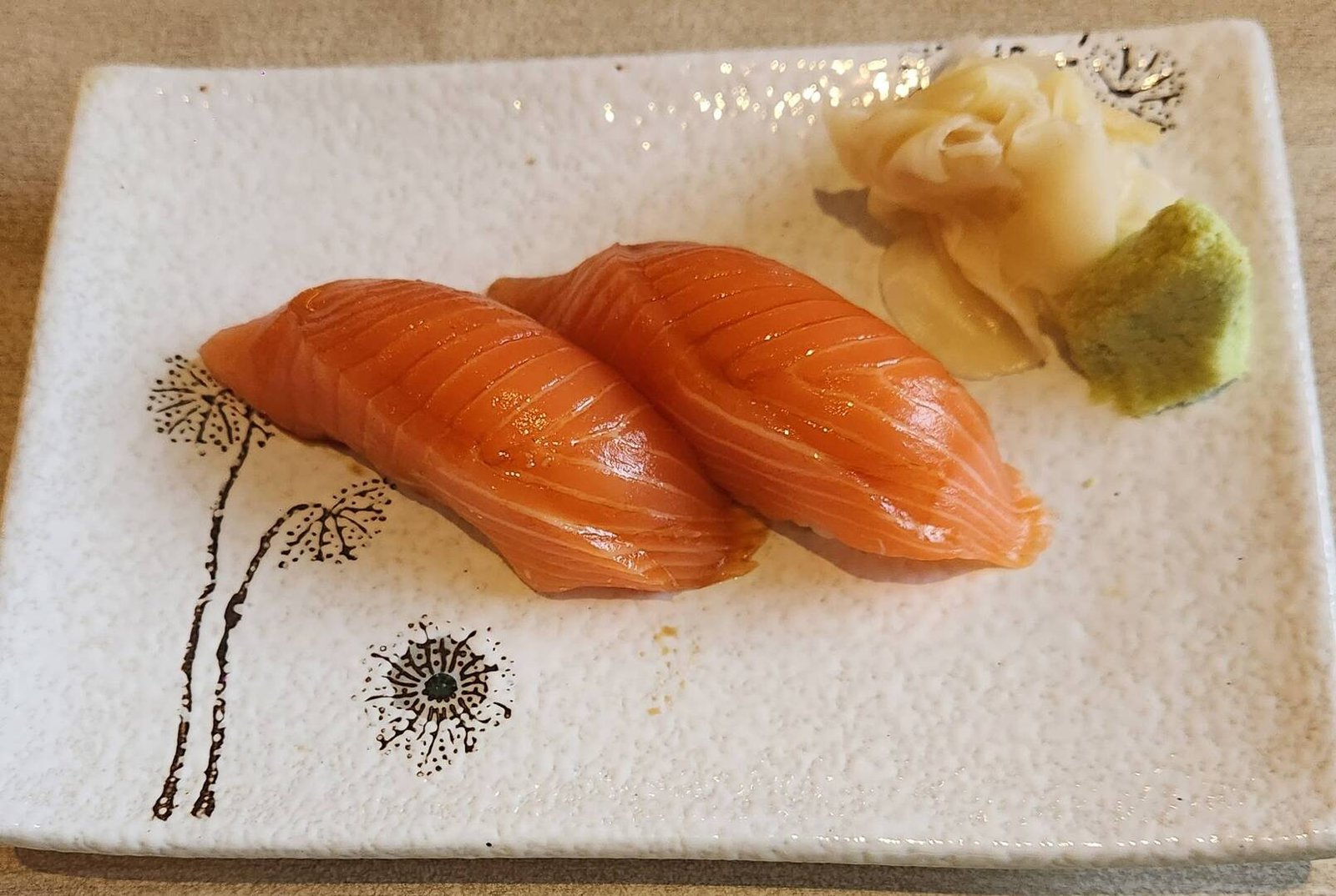 수끼야끼 우동에 연어 초밥 1개와 광어 초밥 1개를 시켰습니다.