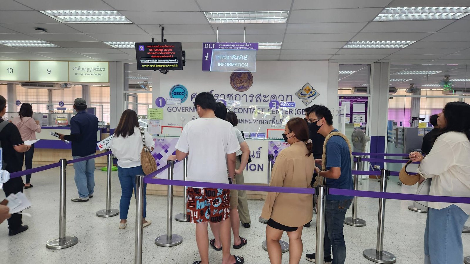 - 보통 1층 메인 입구에 들어가면 안내가 있습니다. 온눗근처 Department of Land Transportation (Area 3), Sukhumvit에는 외국인 전용 안내가 있고 영어로 안내를 해 줍니다. 이곳에 가서 오토바이 등록을 하러 왔다고 하면 등록에 필요한 양식을 챙겨주며 그린북, 세금서류와 보험서류를 달라고 하고 세금과 보험이 남아있으면 바로 오토바이 검사를 받고 오라고 하나 세금과 보험이 없거나 기간이 짧게 남았으면 1년치를 끈어오라고 합니다.