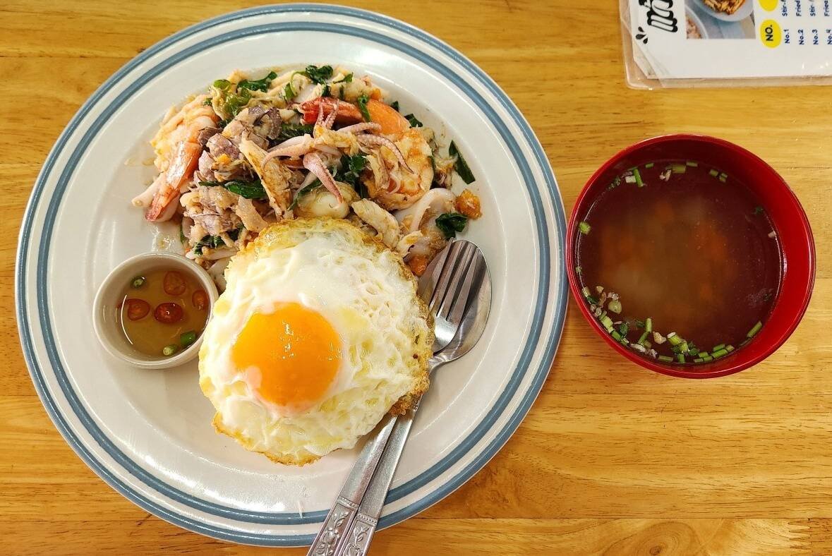 파타야 최애 맛집 중 하나인 깨우 까파오 뿌 แก้วกะเพราปู 해산물 덮밥