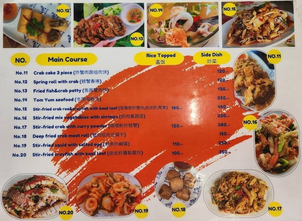 혼자가면 이거 하나, 2인 이상이 가면 이 메뉴에 추가로 20번 Stir fried Crayfish with Basil leaf (갯가재볶음) 을 추가로 시켜 먹으면 아주 맛있는 강추하는 맛집으로 요리사마다 차이가 있는데 어떤 요리사는 고추를 사발로 퍼 넣으니 맵찔이들은 꼭 마이펫~(안맵게)를 얘기하세요. 안그럼 요리사 잘못걸림 고추 엄청넣어 엄청 맵습니다.