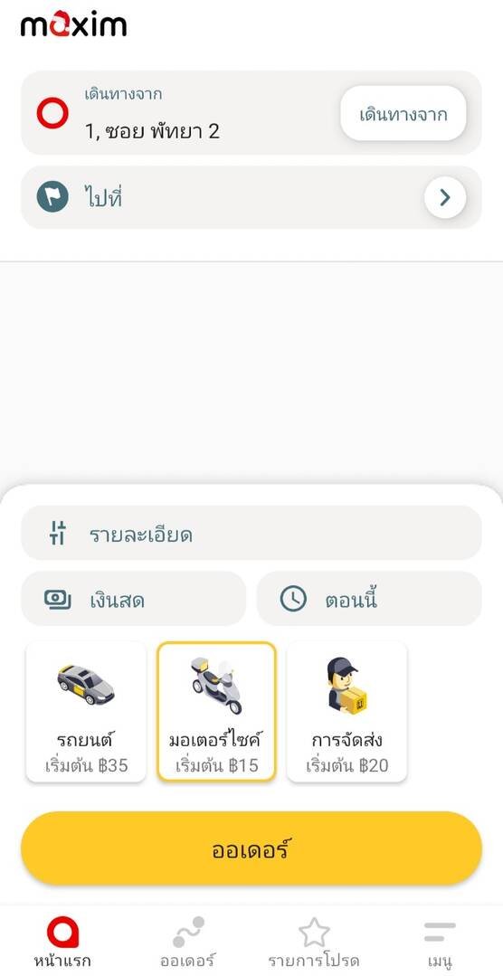 앱을 받고 설치하면 처음에는 위 처럼 태국어로 나오는데 이건 설정(맨 아래 우측 3줄)에 가서 언어를 영어로 변경하면 됩니다. (아직 한국어 지원안됨) 언어를 변경하고 나면 크게 불편한게 없이 그랩이나 볼트와 같은 방식으로 사용하면 되기에 딱히 말할수 있는 단점은 없습니다.