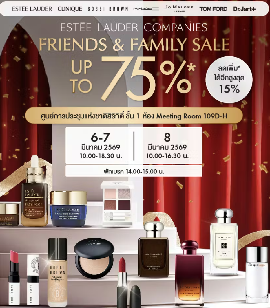 에스티로더 패밀리세일 (Estee Lauder) Friends & Family Sale 2026이 방콕에서 열리는데 아무나 무료입장이니 이 시기에 방콕에 계신분들 중 에스티로더 및 에스티로더가 소유한 브랜드들인 바비브라운, 클리닉, 톰포드, 닥터자르트등에 관심있으신 분들은 이 쇼핑 기회를 놓치지 마세요.
