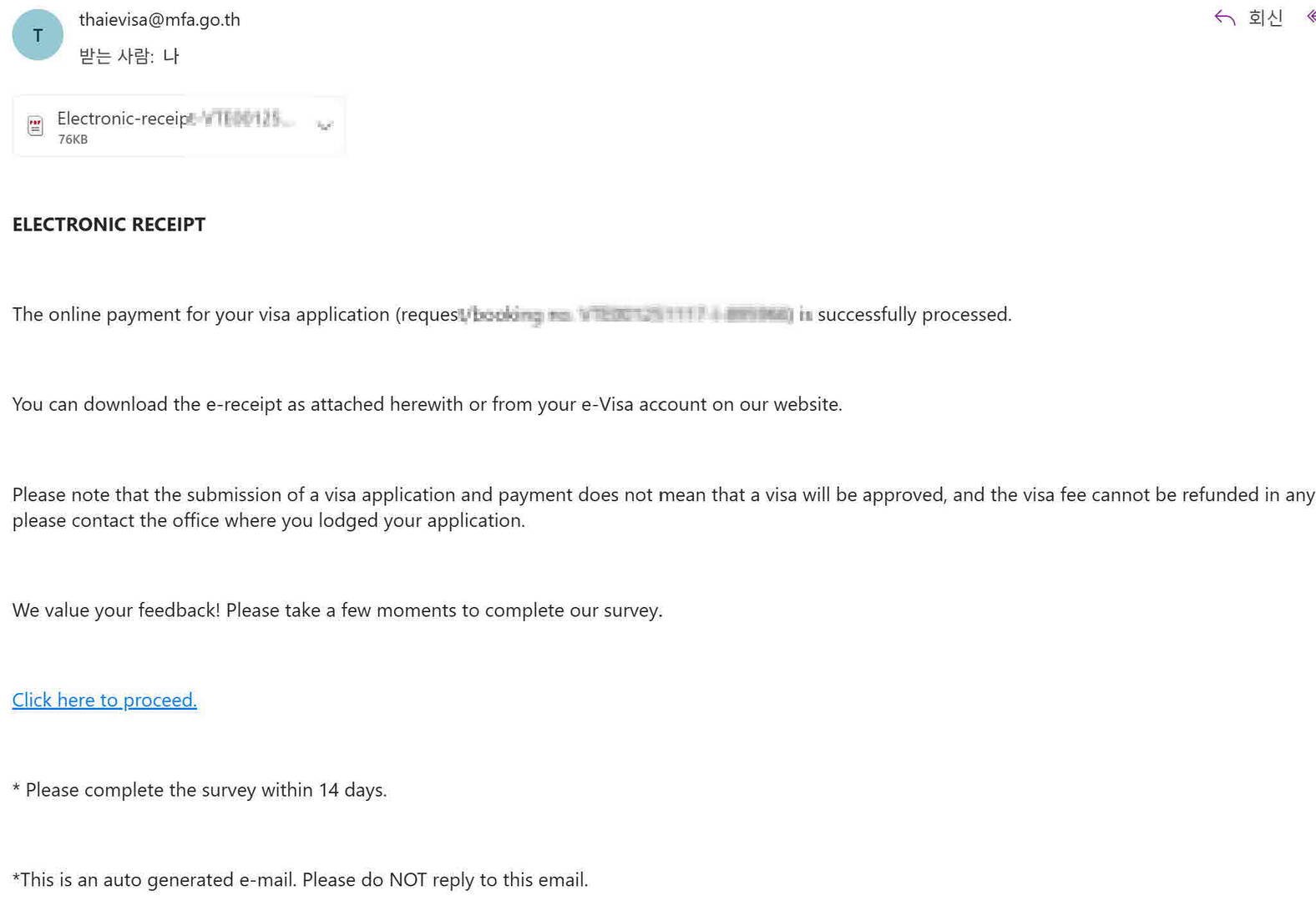 만약, 이 이메일을 못받으면 접수가 제대로 안된것이니 DTV 비자 신청 사이트에 가서 확인 해야 합니다.