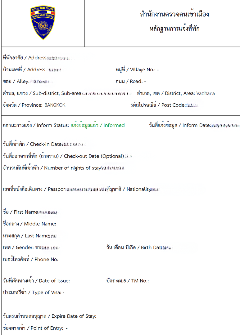 참고로, TM30 미신고는 집주인의 경우 800~2,000태국 바트, 호텔의 경우 최대 10,000바트 까지 벌금이 부과되고 1차 신고의무가 집주인이나 호텔에 있지만 체류자 역시 2차 의무가 있어 미신고시 2,000바트 까지의 벌금이 부과될수 있고 90일 체류신고나 비자연장시 불이익이 있기에 반드시 확인해야 합니다.