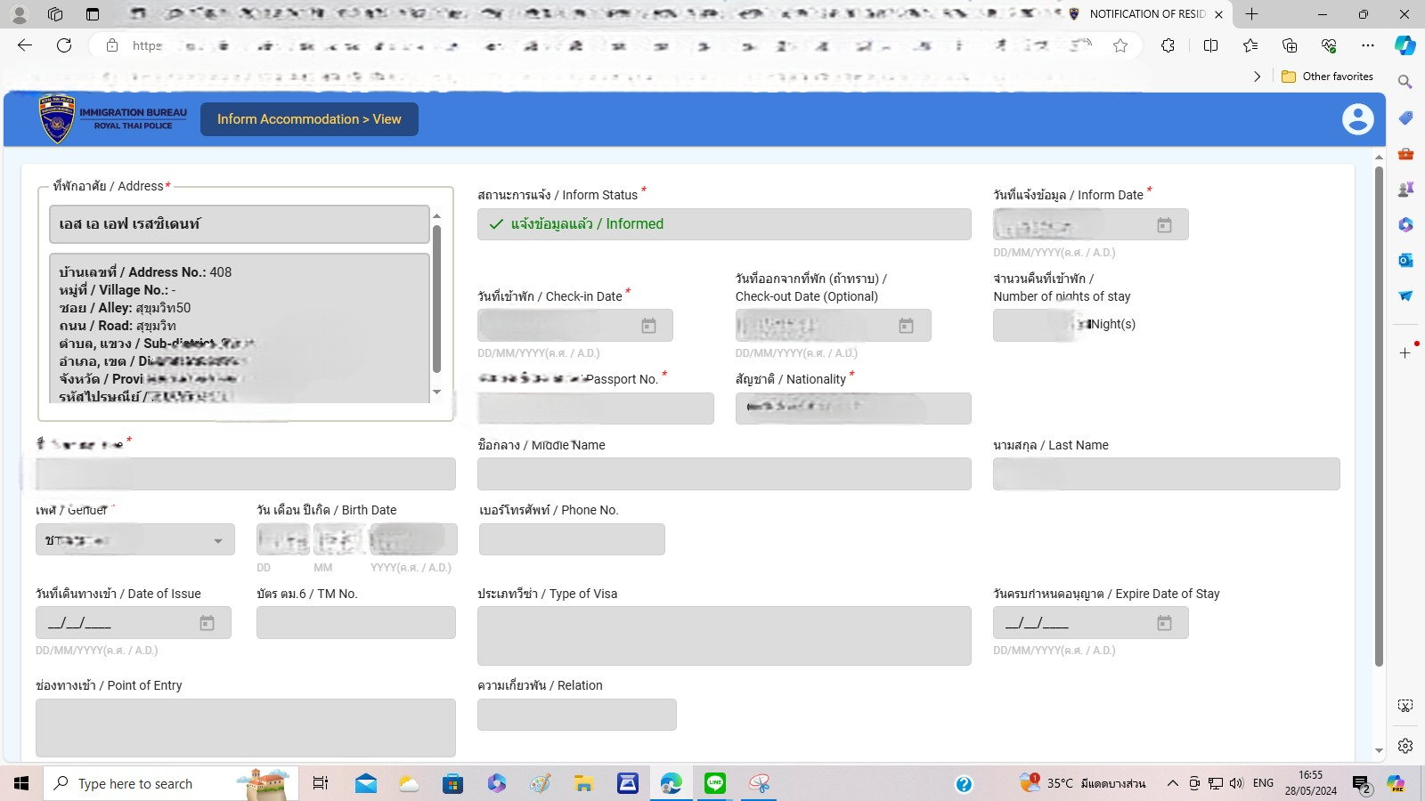TM30 신고증 (Informed라고 되어 있는게 신고된것 입니다)